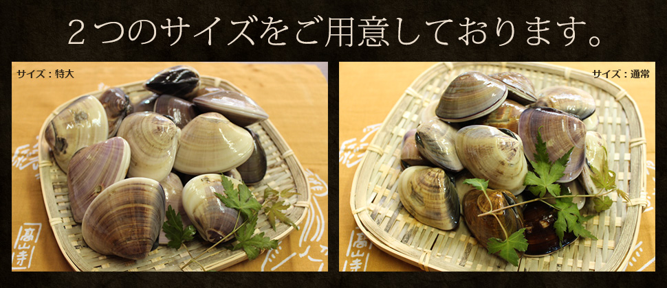 ※はまぐり(中サイズ)1kg = 15~20粒程度となります。